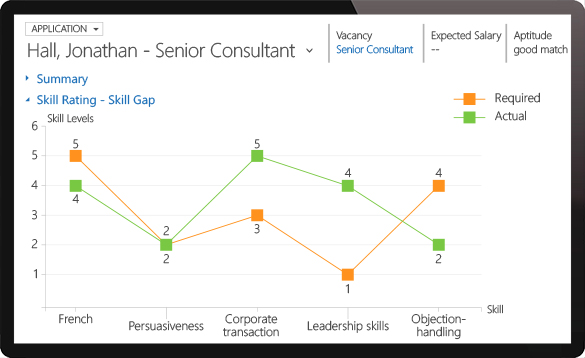 In the Recruiting module, you can see at a glance how suitable an applicant is for the job posting in question. Assign points for required skills on the basis of the application documents or have the applicants carry out a self-assessment in your application portal.