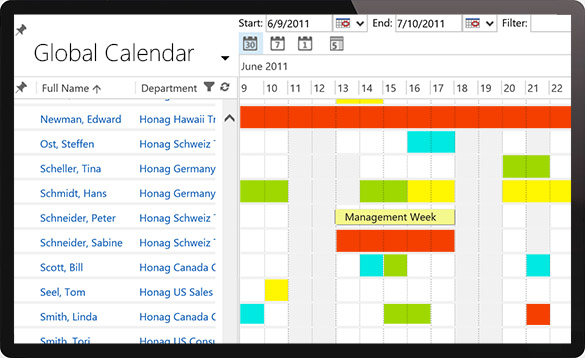 The HR solution is fully integrated into this calendar, out-of-the-box in all departments for all employees - immediately available and always synchronized.