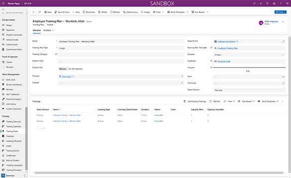 Training management is now organized in a hierarchical structure, and starts with the training plan. This plan helps guide employees through their learning path, allowing multiple trainings to be grouped and arranged in a specific order.