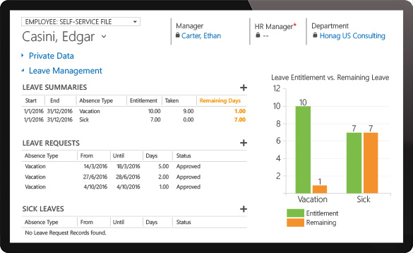 HR for Dynamics provides an HR Shared Service Center (SSC), which you can use to submit any HR requests. These can then be processed in HR.