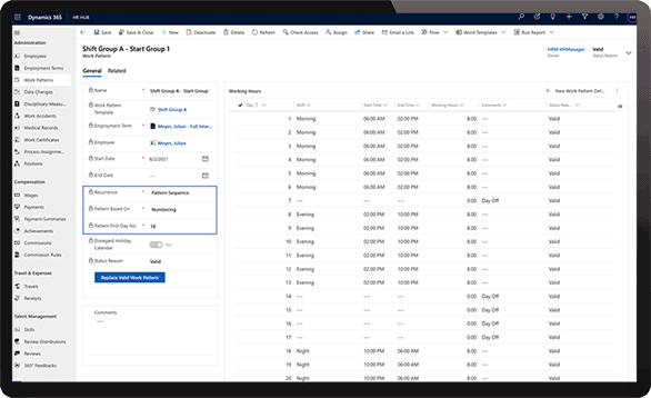 This makes it much easier to define and apply with a long time period (e.g. 90 work pattern details). For example, an employee can now start on day 73 of a work pattern and does not necessarily always have to start from day 1.